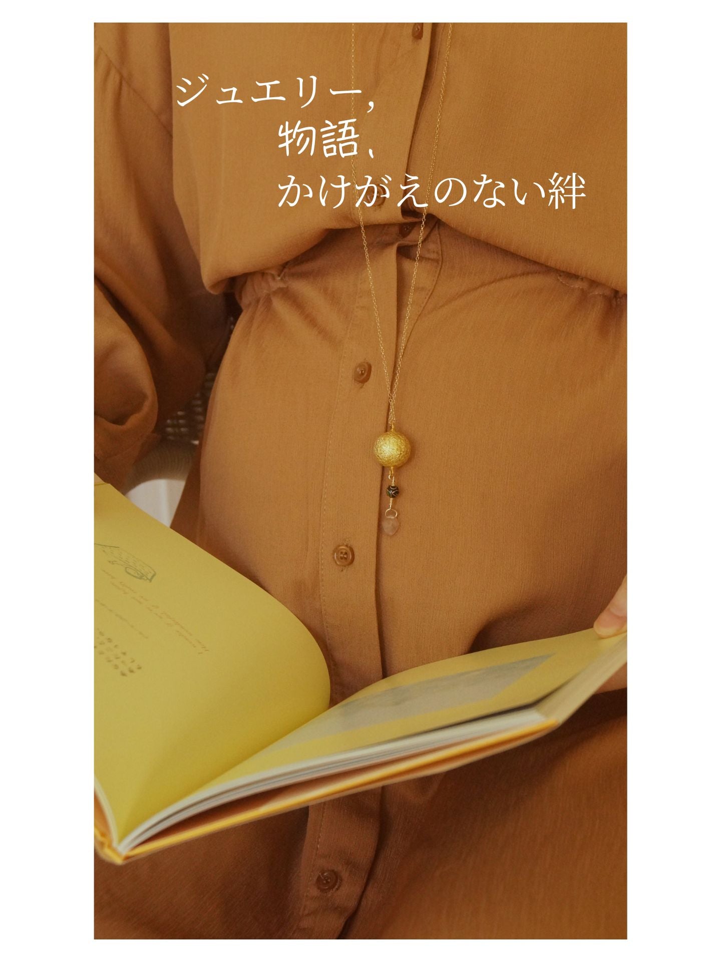 14Kゴールドフィルドまたは京都の絹紐で手作りされたネックレス。歩くたびに優しい音を奏で、妊婦さんとお腹の赤ちゃんとの特別な絆を育みます。