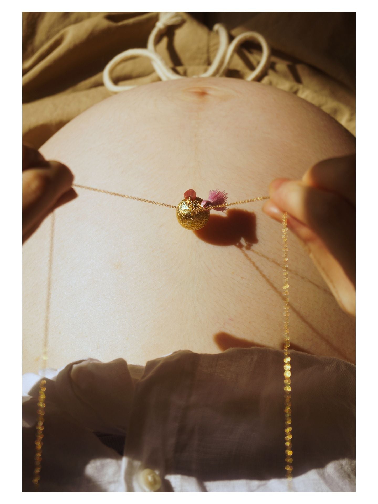ペンダントをお腹の上で転がしたり、軽く弾ませたり、手のひらで揺らすことで、柔らかな音色が赤ちゃんに届きます。毎日の小さなリチュアルが、母子の特別な時間を作ります。